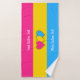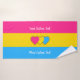 Towel set with the lipstick pansexuality pride flag with little hearts in the centre of the design. Pink, yellow, and blue flag of the pan pride movement; with an editable text field for your name or message