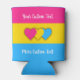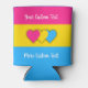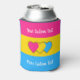 Can cooler with the pansexuality pride flag with little hearts in the centre of the design. Pink, yellow, and blue flag of the pan pride movement; with an editable text field for your name or message