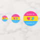 Confetti with the pansexuality pride flag with little hearts in the centre of the design. Pink, yellow, and blue flag of the pan pride movement; with an editable text field for your name or message