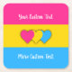 Paper square coaster with the pansexuality pride flag with little hearts in the centre of the design. Pink, yellow, and blue flag of the pan pride movement; with an editable text field for your name or message