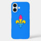 Phone case for Apple iPhone 16 with fleur-de-lis (fleur-de-lys or lily flower) symbol with rainbow stripes of pink, yellow and blue from pansexuality flag; pan pride design on a blue background