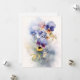 Delicate pansies in shades of blue, purple, and yellow are depicted with soft, flowing watercolors, creating a dreamy, ethereal effect. The background remains misty and subtle, enhancing the focus on the vibrant flowers.