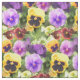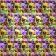 Linda Baysinger Peck’s cheerful yellow, orange, lavender and purple pansy flowers with watercolor textured look.
