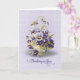 Basket of pansies on texture purple background with lace border for general thinking of you.