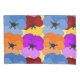 This pillowcase has a Spring design of purple, blue, orange, and red with yellow pansies layered on each other on a field of yellow.