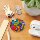Colorful painting motif of pansies by Lisa Lorenz on a stylish Key Chain