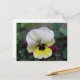 This pretty floral postcard features a detailed photograph of a white and yellow pansy flower with a black centre.