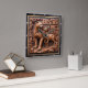 This dramatic square wall clock features a highly dimensional, close-up illustration of a brown panther (or leopard) and a white, happy goat standing side-by-side. The entire design is rendered in muted brown, tan, and dark leather-like tones, strongly suggesting a deep sculpted relief or Sculpted Leather Look. The panther has textured spots and is positioned on the left, while the goat is on the right, smiling with large curved horns. The background features detailed rocky terrain and stylized foliage carved behind the animals, set against a dark textured panel. The entire foreground is textured, resembling carved rocks and ground cover. The large, three-dimensional embossed text "BESTIES FOR LIFE" is carved across the top center in a bold, golden serif font. The clock face features a simple clock face border with large, white, numbered tick marks (1 to 12) integrated into the outer frame. The artwork is surrounded by a thick, dark brown decorative border that resembles a black wood frame.