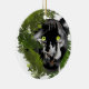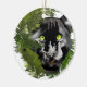 Decorative ornament for holidays or year round display featuring a black panther looking through foliage.