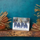 Modern family photo plaque featuring 3 square pictures for you to replace with your own, the title "PAPA", a personalised saying that reads "the man, the myth, the legend", and the grandkids names.