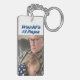 Keychain with World's number 1 papa in 3D sea blue text. Customise it with your own photo. Available in several styles.