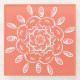 This white mandala sits on a papaya orange or salmon background. The colours are light and warm. Part of the Avanenn Mandala Collection.