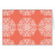 This white mandala sits on a papaya orange or salmon background. The colours are light and warm. Part of the Pras Mandala Collection.