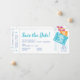 Colourful turquoise, orange, and pink papel picado paper flags on a boarding pass plane ticket style save the date card perfect for a Mexico wedding destination! Select custom colours and fonts and include helpful travel information for your guests on the back, or delete what isn't needed. Check out the Paper Grape Destinations Zazzle Designer shop for more styles for elegant destination weddings.