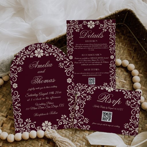 Papel Picado Burgundy Red Mexican Wedding Invitation