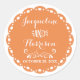 MATCHING ENVELOPE STICKERS OR SEALS - or use for favours, napkin rings or belly band seal. Inspired by the wonderful Mexican fiesta banners of tissue paper that are hand cut in delightful folk art patterns, this invite set is meant to be mix and match bright colours. Perfect for a backyard, rustic, country western or barn style, spring or summer wedding celebration under the trees. Change the front or back colour using the colour change picker or we can help if you need it, just message us. Hand drawn design elements include laurel leaf wreath elements, swirl scroll flourishes, cute whimsical dove birds, a heart with flowers and leaves and a scalloped edge. On the reverse side are the bride and groom's initials. Original art and graphic design copyright Audrey Jeanne Roberts. COLORS: ed8747 citrus tangerine orange and white.