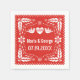 Papel picado love birds red wedding fiesta paper napkin featuring two love birds and a love heart with the word love as well as flowers, leaves and small dots. This nature inspired Mexican folk art style floral wedding template design is part of a wedding set or collection and is completely customisable. Note that this is not really laser cut paper just printed images. Great for a wedding bridal shower, reception, engagement, or anniversary party. Colours: red and white