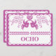 MATCHING TABLE NUMBER OCHO OR EIGHTE CARDS - with a pair of love birds and a heart, for your wedding reception, rehearsal dinner or bridal shower. Inspired by the wonderful Mexican fiesta banners of tissue paper that are hand cut in delightful folk art patterns, this invite set is meant to be mix and match bright colours. Perfect for a backyard, rustic, country western or barn style, spring or summer wedding celebration under the trees. Change the front or back colour using the colour change picker or we can help if you need it, just message us. Hand drawn design elements include laurel leaf wreath elements, swirl scroll flourishes, cute whimsical dove birds, a heart with flowers and leaves and a scalloped edge. On the reverse side are the bride and groom's initials. Original art and graphic design copyright Audrey Jeanne Roberts. COLORS: efc050 harvest gold mustard yellow lemon and white.