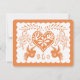 MATCHING RSVP CARD - return response cards for guests to reply to the bride. Inspired by the wonderful Mexican fiesta banners of tissue paper that are hand cut in delightful folk art patterns, this invite set is meant to be mix and match bright colours. Perfect for a backyard, rustic, country western or barn style, spring or summer wedding celebration under the trees. Change the front or back colour using the colour change picker or we can help if you need it, just message us. Hand drawn design elements include laurel leaf wreath elements, swirl scroll flourishes, cute whimsical dove birds, a heart with flowers and leaves and a scalloped edge. On the reverse side are the bride and groom's initials. Original art and graphic design copyright Audrey Jeanne Roberts. COLORS: bright citrus tangerine orange and white.