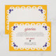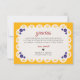 This Papel Picado Yellow Nuestra Boda Spanish Wedding Thank You Card frame is adorned with a cutout pattern resembling a papel picado effect, adding a traditional Mexican touch. Accented with floral and geometric details in vibrant colors, the design exudes warmth and charm, making it perfect for a romantic wedding stationery.