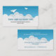 Paper aeroplanes in flight above fluffy white clouds represent moving on to bigger and better things. The company name and main contact information prints in the clouds. The reverse shows the paper aeroplanes have moved on with further contact information printing in the blue sky and clouds Available with matching products.