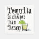 TEQUILA IS CHEAPER THAN THERAPY. A Shot of Tequila with a Slice of Lime and Salt and the saying, "Tequila is cheaper than therapy". Cocktail Humour.