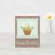 A unique Birthday card that features a print of my delicate handmade paper craft daisies in a pot that were punched out and cut from paper, two white and one pink. They sit on a house windowsill.