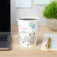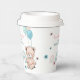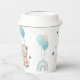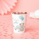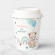 Paper cup for 1st birthday is decorated with cute teddy bear, balloons and rainbow.