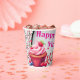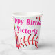 Paper Cup Pink White Stripe Birthday Baseball
