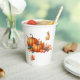 Serve drinks with seasonal charm using these autumn baby shower paper cups. Featuring pumpkins and a vintage bottle on a bed of green foliage, these cups perfectly match your rustic fall table setting. Disposable, sturdy, and elegantly designed, they complement the coordinating plates and napkins for a seamless autumn baby shower theme.