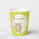 Paper Cups "Pink/Green Owl" 8 oz. Also enjoy matching paper plates, paper napkins, invitations, bingo cards and stamps.