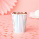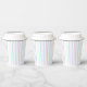 Paper Cups to a magical birthday party with an adorable unicorn with wings in the clouds on a rainbow background.