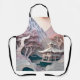 A lovely faux paper cutout landscape apron with mountains, pavilion, and trees.