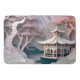 A lovely faux paper cutout landscape bath mat with mountains, pavilion, and trees.