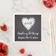 Paper heart on chalkboard with monogram wedding paper napkin featuring a notebook paper love heart with holes around it on black chalkboard. On the heart there are your initials. This rustic whimsical monogrammed wedding template design is completely customisable and is perfect for a casual wedding especially for teachers, bridal shower, reception, engagement, or anniversary party.