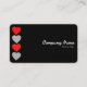 A business card template with a column of hearts in alternating colours and subtle tissue paper like semi-transparent texture. Company name, business type on the front with name, address and other details on the back. Suitable for many types of business.