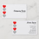 A business card template with a column of hearts in alternating colours and subtle tissue paper like semi-transparent texture. Company name, business type on the front with name, address and other details on the back. Suitable for many types of business.