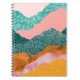 Paper landscape, ripped, torn edges, greens, rust, notebook - Junk Journalling is all the rage and torn paper, rough edges, hand dyed paper and layering of those pieces is very much in style. The design on this journal cover looks like a mountainous landscape made from those dyed and torn bits of paper. There are so many beautiful colours here - teal, green, pink, rusty orange and dots of black.