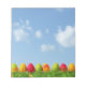 5.5” x 6” notepad with an image of yellow, green, orange and pink paper mache Easter eggs on grass decorated with fun, whimsical designs. Blue cloudy sky background. See matching notebook. See the entire Easter Notepad collection under the OFFICE category in the HOLIDAYS section.