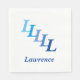 Name shows in dark blue. Initial is in five shades of blue, from light to dark, staggered, front to back. Personalise changing to your Last name (surname) and initial (monogram).