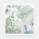 Beautiful paper napkin in green, blue and peach pastels. Image of a butterfly and flower. Great for decoupage and other paper crafts.