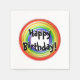 Rings of ever increasing size form centre image (purple, blue, green, yellow, orange, red). You may customise the black text with white "shadow" that defaults to "Happy Birthday!"