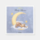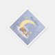 Paper napkin with a cute sleeping plush bunny on the moon for a baby shower.