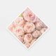 Party paper napkins shown in the white luncheon size with a photo print of pretty blush pink roses.