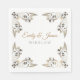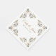 Party paper napkins shown in the white luncheon size with a print of a fancy Golden colours leaf borders. Couple's last name highlighted in Silver-Grey for you to personalise to your name choices. First names in a Golden colour. Coordinates with "gold fancy leaf border favour box" and the "gold fancy leaf border reception invitation card".