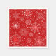 Party paper napkins shown in the white cocktail size with a festive holiday red and white snowflakes print.