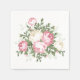 Party paper napkins shown in the white cocktail size with a print of a large sized bouquet of vintage roses in Ivory and Pink. Coordinates with "Vintage Roses wedding favour box", "Vintage Roses" wedding and "temple wedding" invitations and the "Vintage Roses" reception invitation card".