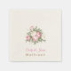 Party paper napkins shown in the Ecru cocktail size with a print of a bouquet of soft vintage coloured roses in Ivory and Pink. Newlyweds names to personalise to your name choices shown in Pink and newlyweds last names in Golden. Coordinates with "Vintage Roses wedding favour box", "Vintage Roses" wedding and "temple wedding" invitations and the "Vintage Roses" reception invitation card".