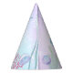 A nautical themed birthday Paper Party Hats featuring illustrations of the seabed, a cute octopus, an adorable jellyfish and a magical mermaid tail.