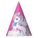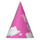 Paper Party Hats to a magical birthday party with an adorable unicorn with wings in the clouds.